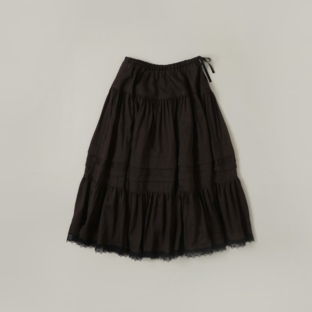 Gathered lace skirt black
