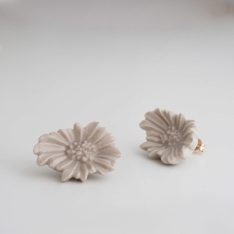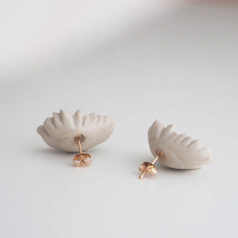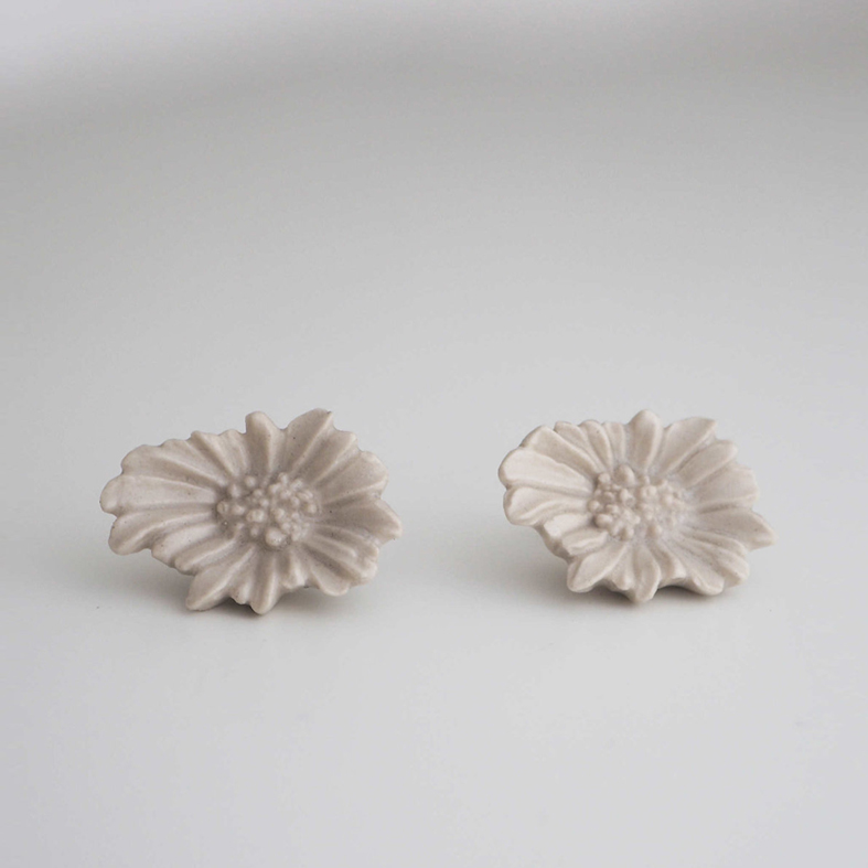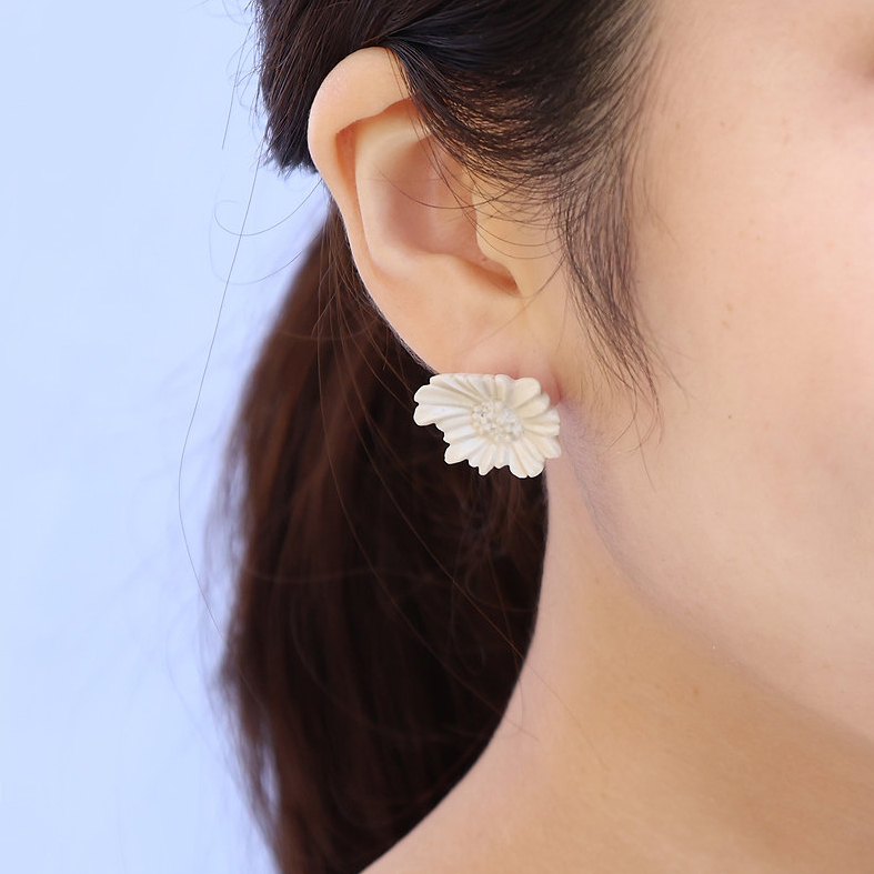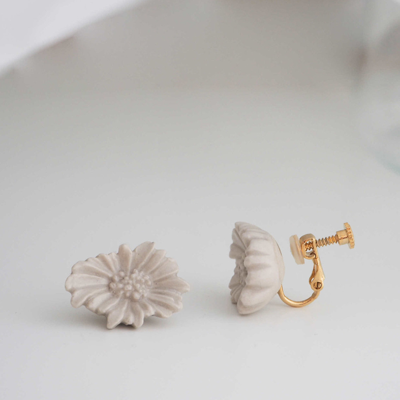 White Porcelain, Brass, K10YG Pierce hook, Brass clip-on